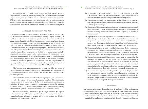 YOLANDA CASTAÑEDA ZAVALA • JOSÉ FRANCISCO ÁVILA CASTAÑEDA Preservación de la diversidad de maíces nativos en Puebla frente al cambio tecnológico