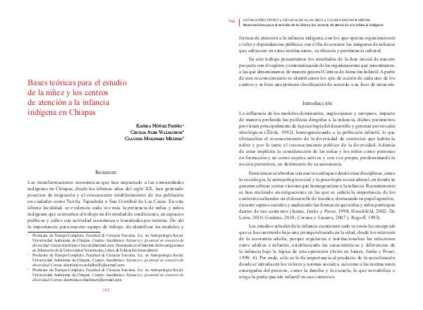 KATHIA NÚÑEZ PATIÑO • CECILIA ALBA VILLALOBOS • CLAUDIA MOLINARI MEDINA Bases teóricas para el estudio de la niñez y los centros de atención a la infancia indígena
