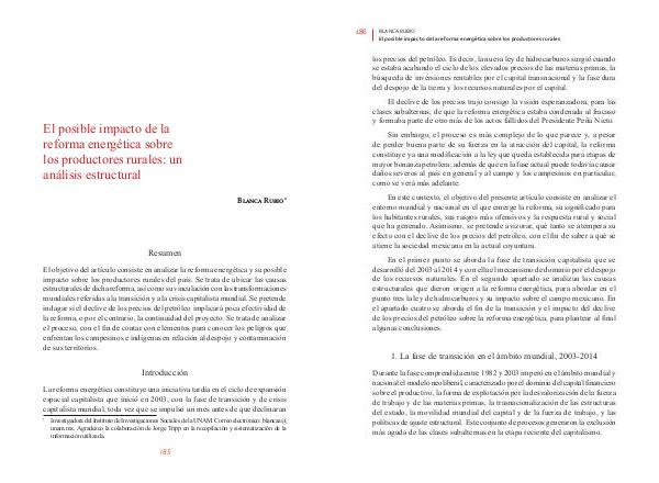 de los precios del petróleo sobre la reforma energética, para plantear al final