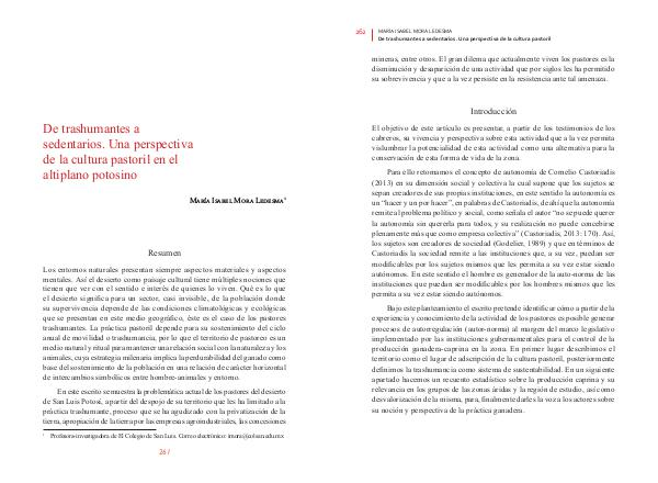 Profesora-investigadora de El Colegio de San Luis. Correo electrónico: imora @ colsan. edu. mx 261