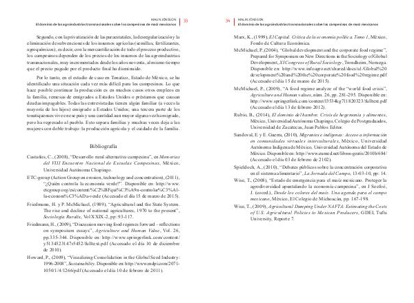 Friedmann, H. y P. McMichael, (1989), “Agricultural and the State System.