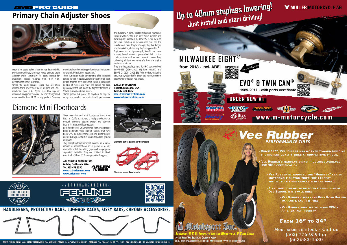 ARLEN NESS ENTERPRISES Dublin, California, USA Tel: 925 479 6350 contact @ arlenness. com www. arlenness. com and durability in mind," said Bert Baker, co-founder of Baker Drivetrain. " We build parts with a purpose, and these adjuster shoes are the same. We tested them on the track, including on my own race bike, and the results were clear: they ' re stronger, they last longer, and they do the job the way they ' re supposed to." Engineered as a high-strength, low-friction wear surface, these low-cost upgrade shoes help control chain motion and reduce parasitic power loss, delivering efficient torque transfer from the engine to the transmission. They are direct replacements for H-D part numbers 39976-65B( 1965-2000 Big Twin models) and 39976-01( 2001-2006 Big Twin models, excluding the 2006 Dyna) and offer a high-quality solution now that OEM production has ended.