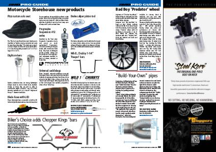 Biker’ s Choice has added fifteen styles of ' Chopper Kings ' handlebars to its product line- available in chrome or black with choice of riser heights. Chopper Kings was founded in Italy in 2013 and a year later teamed-up with Dutchman Jaap Bakker of Motolux / Highway Hawk fame. All their bars are hand-made in Italy and meet the stringent European safety and approval regulations. BIKER ' S CHOICE, USA, www. bikerschoice. com
