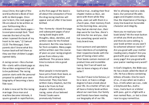 The— formerly— blank first page and subsequent pages of your racing book begins with thoughts, ideas, sketches, and written notes for the finished document. But this new book is far from complete. Many pages will be written over the course of years as your racing program grows from infancy into adulthood. This process takes time to mature into a good story line.