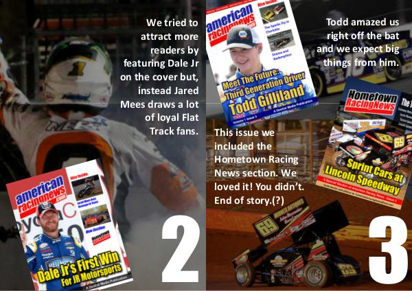 We tried to attract more readers by featuring Dale Jr on the cover but, instead Jared Mees draws a lot of loyal Flat Track fans. 2