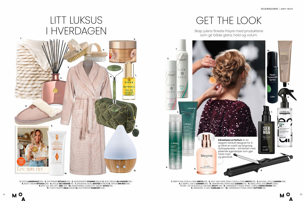 1. FIBER FOAM, ELENI & CHRIS NIKITA 319,- 2. HEAT AND SHINE SPRAY, ELENI & CHRIS NIKITA 319,- 3. BALSAM, JOICO LUGGEN 369,- 4. SJAMPO, JOICO LUGGEN 359,- 5. HÅRPARFYME, KÉRASTASE LUGGEN 470,- 6. KRØLLTANG, GHD ZPLITT 2299,- 7. HÅR- OG SKJEGGOLJE, SEB MAN ZPLITT 349,- 8. VARMEBESKYTTENDE SPRAY, L ' ORÉAL CHESS FRISØR 306,- 9. HÅRMASKE, O-WAY CANCAM 437,- 10. VARMEBESKYTTENDE SPRAY CUTTERS 129,-