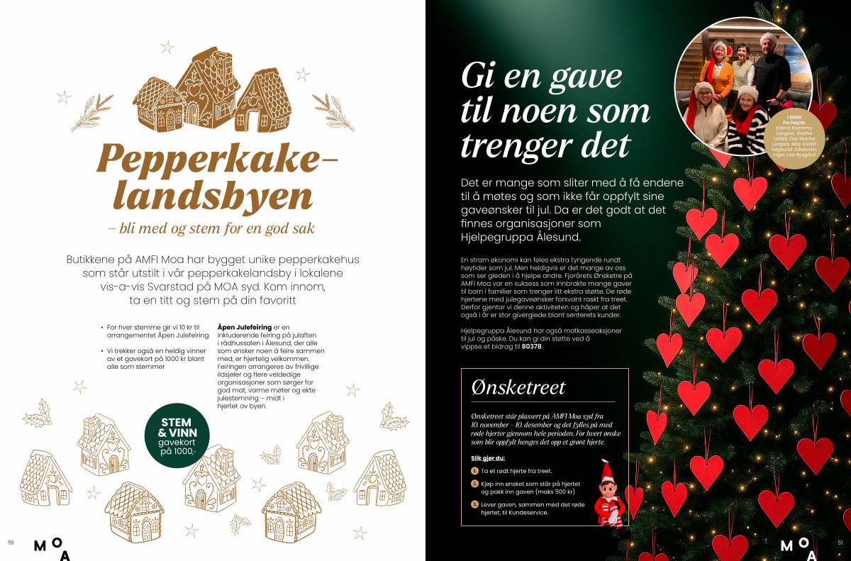 En stram økonomi kan føles ekstra tyngende rundt høytider som jul. Men heldigvis er det mange av oss som ser gleden i å hjelpe andre. Fjorårets Ønsketre på AMFI Moa var en suksess som innbrakte mange gaver til barn i familier som trenger litt ekstra støtte. De røde hjertene med julegaveønsker forsvant raskt fra treet. Derfor gjentar vi denne aktiviteten og håper at det også i år er stor giverglede blant senterets kunder.
