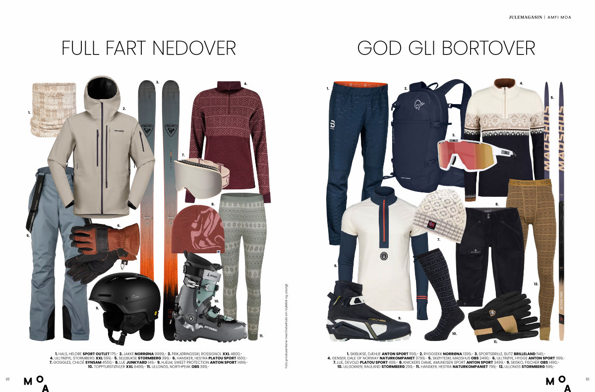 1. HALS, HELDRE SPORT OUTLET 175,- 2. JAKKE NORRØNA 9999,- 3. FRIKJØRINGSSKI, ROSSIGNOL XXL 4800,- 4. ULLTRØYE, STORMBERG XXL 599,- 5. SELEBUKSE STORMBERG 399,- 6. HANSKER, HESTRA PLATOU SPORT 1600,- 7. GOGGLES, CHLOÉ SYNSAM 4550,- 8. LUE JUNKYARD 149,- 9. HJELM, SWEET PROTECTION ANTON SPORT 1499,- 10. TOPPTURSTØVLER XXL 6499,- 11. ULLONGS, NORTHPEAK OBS 399,-