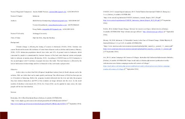 UNICEF, 2015. Annual Report Indonesia 2015. United Nations International Children ' s Emergency Fund, [ Online ], Available: HYPERLINK“ http:// www. unicef. org / indonesia / UNICEF _ Indonesia _ Annual _ Report _ 2015 _ EN. pdf” http:// www. unicef. org / indonesia / UNICEF _ Indonesia _ Annual _ Report _ 2015 _ EN. pdf [ 15 th September 2016 ]