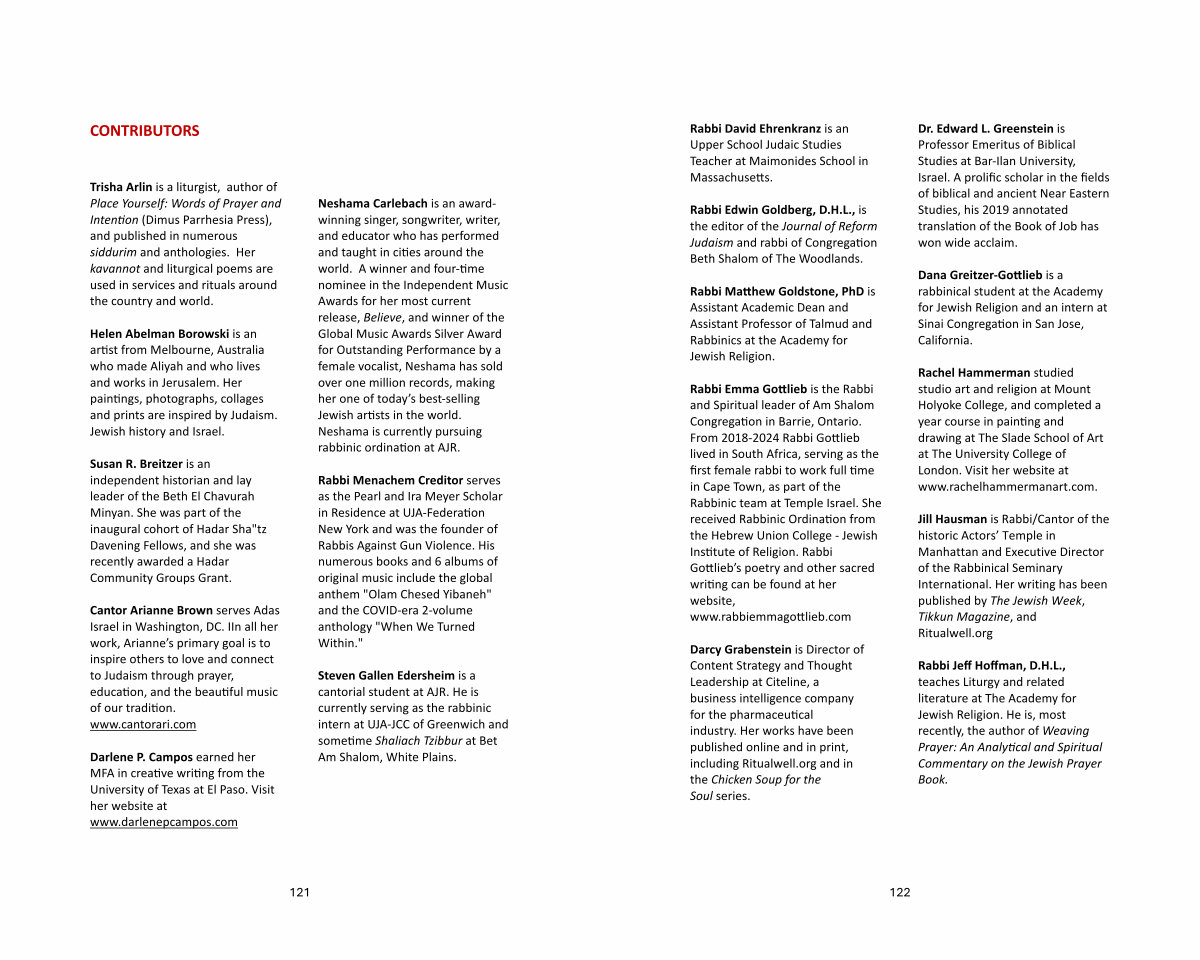 Rabbi Jeff Hoffman , D . H . L ., teaches Liturgy and related literature at The Academy for Jewish Religion . He is , most recently , the author of Weaving Prayer : An Analy5cal and Spiritual Commentary on the Jewish Prayer Book .
