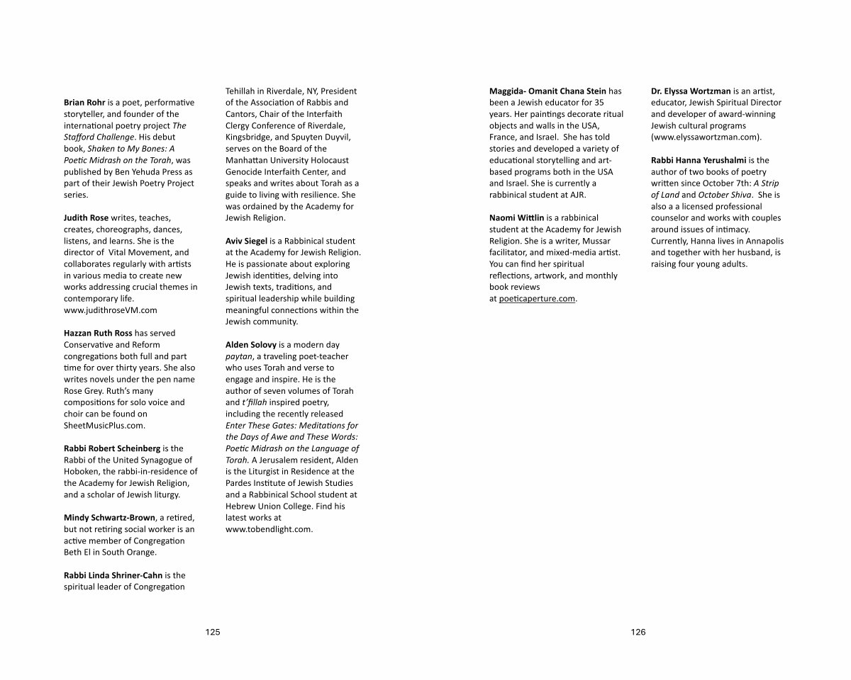 Naomi Wi ~ lin is a rabbinical student at the Academy for Jewish Religion . She is a writer , Mussar facilitator , and mixed-media arQst . You can find her spiritual reflecQons , artwork , and monthly book reviews at poeQcaperture . com .