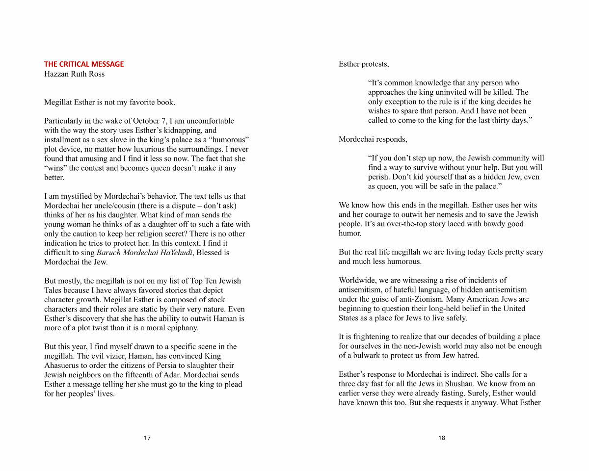 “ If you don ’ t step up now , the Jewish community will find a way to survive without your help . But you will perish . Don ’ t kid yourself that as a hidden Jew , even as queen , you will be safe in the palace .”
