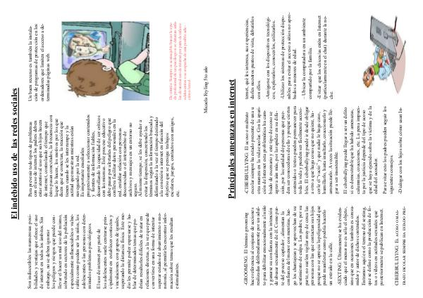 -CIBERBULLYING: El acoso o maltrato escolar siempre ha estado presente de una u otra manera en la vida escolar. Con la aparición de Internet esta problemática ha cambiado de escenario y este tipo de acoso se agrava aún más, por la rapidez en su difusión, por la cantidad de personas que pueden ser conocedoras de ello y porque ciertos contenidos o textos pueden permanecer para toda la vida y pueden ser fácilmente accesibles. El ciberbullying puede ir desde obligar a otro a que haga cosas que no quiere, hacerle el“ vacío” y que nadie le haga caso, humillarlo, hasta insultarlo, coaccionarlo y amenazarlo. A veces la situación puede llegar a ser insostenible.