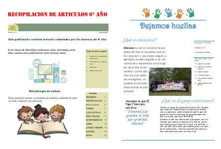 Esta publicación contiene artículos redactados por los alumnos de 6º año
