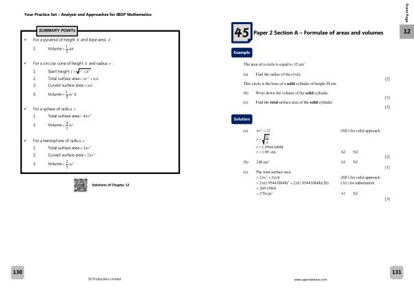 Paper 2 Section A – Formulae of areas and volumes