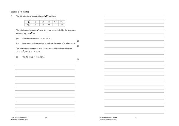 Section B ( 40 marks ) 7 . The following table shows values of x and log y .