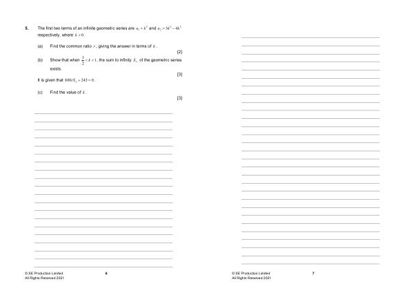 ( b ) Show that when 1 �k � 1, the sum to infinity S � of the geometric series 2 exists . [ 3 ]