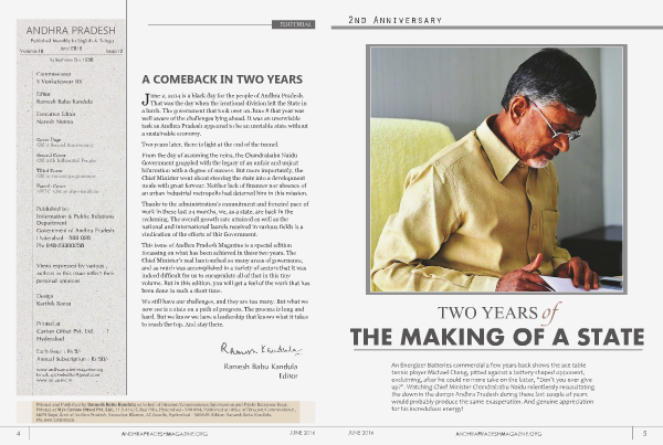 I&PR Dept, Govt of Andhra Pradesh, Samachar Bhavan, AC Guards, Hyderabad - 500028. Editor: Ramesh Babu Kandula.