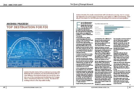 But as important to note is the emergence of AP as the challenger within India. The state is set in every way to rise up the rankings sooner than later. v JUNE 2016 ANDHRAPRADESHMAGAZINE. COM 41