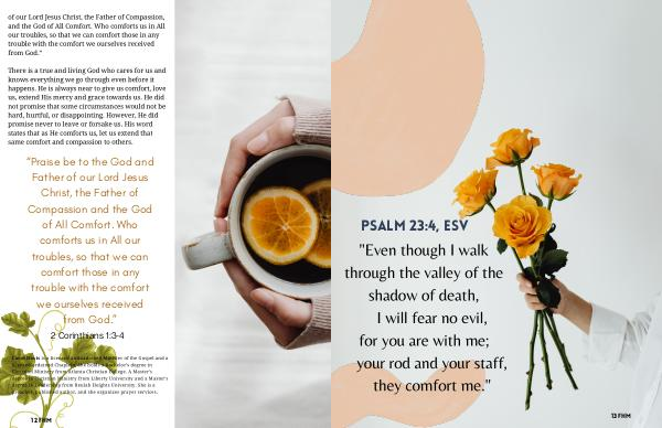 There is a true and living God who cares for us and knows everything we go through even before it happens . He is always near to give us comfort , love us , extend His mercy and grace towards us . He did not promise that some circumstances would not be hard , hurtful , or disappointing . However , He did promise never to leave or forsake us . His word states that as He comforts us , let us extend that same comfort and compassion to others .
