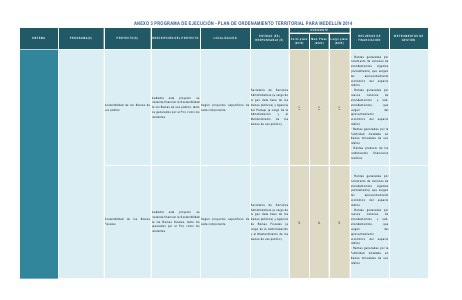 ANEXO 3 PROGRAMA DE EJECUCIÓN - PLAN DE ORDENAMIENTO TERRITORIAL PARA MEDELLÍN 2014