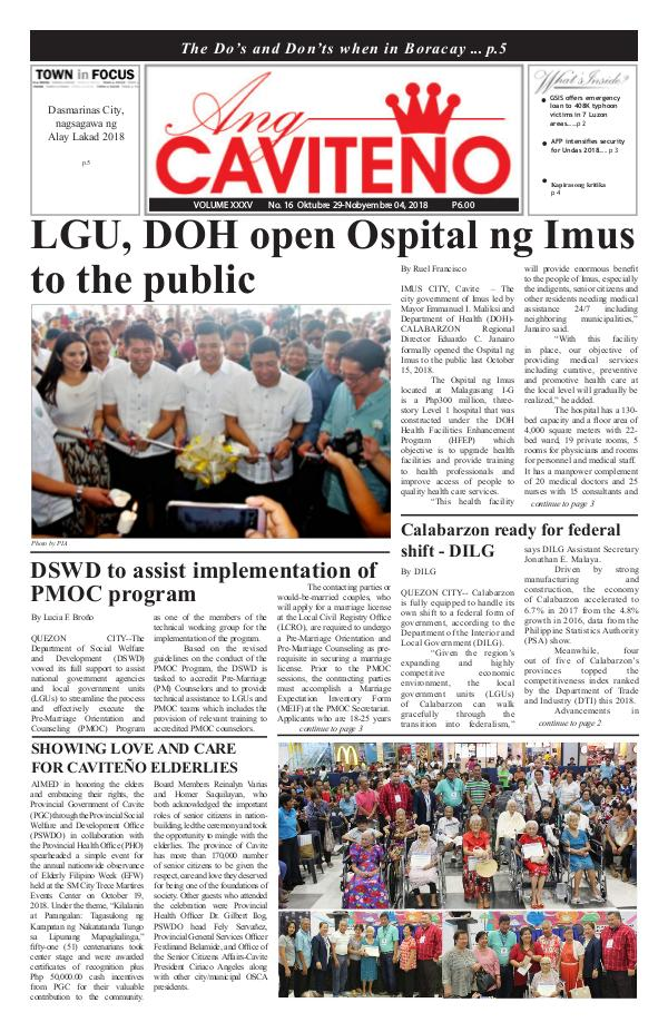 Ang Caviteno Newsweekly October 29-November 04, 2018 Issue