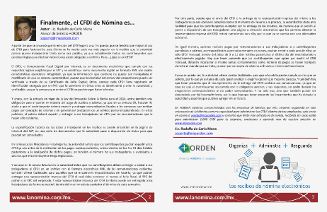 palabras, el patrón deberá expedir y entregar a sus trabajadores un CFDI por las remuneraciones que le