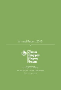 Annual Report 2013 80 College Street Toronto, Ontario M5G 2E2 Tel: (416) 967-2600 Toll free: 1-800-268-7096 Web: www.cpso.on.ca