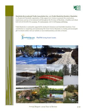 Trails Manitoba is continually supported by dedicated volunteers and charitable donations . Your contribution to completing and maintaining The Great Trail in Manitoba is a lasting and meaningful gift . To donate online visit our website @ www . trailsmanitoba . ca & click on Donate .