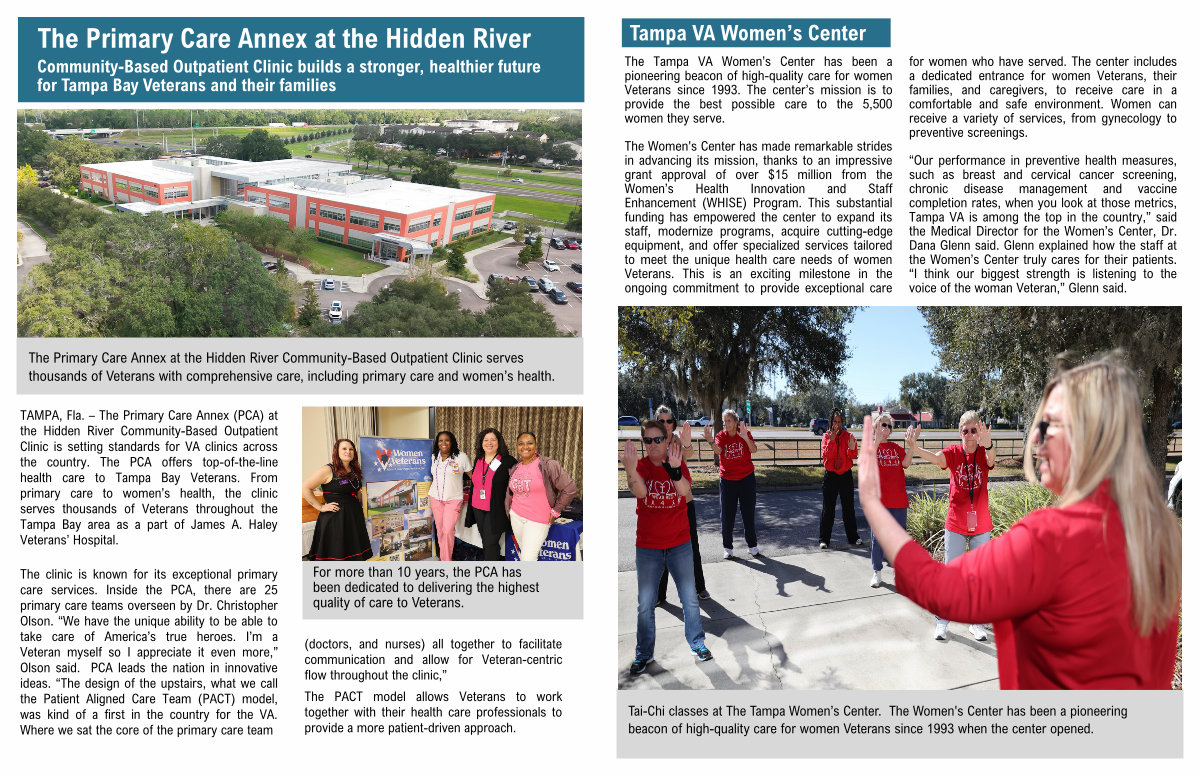 The Tampa VA Women’ s Center has been a pioneering beacon of high-quality care for women Veterans since 1993. The center’ s mission is to provide the best possible care to the 5,500 women they serve.