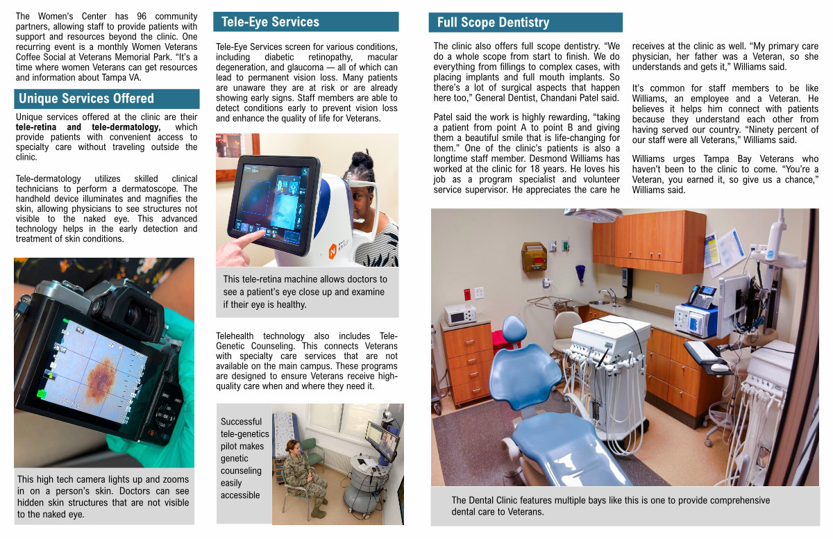 Telehealth technology also includes Tele- Genetic Counseling. This connects Veterans with specialty care services that are not available on the main campus. These programs are designed to ensure Veterans receive highquality care when and where they need it.