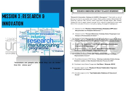 RESEARCH & INNOVATION: GATEWAY TO UniSZA’S RESURGENCE