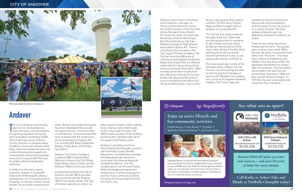 Andover is served by a full-time Police Department through a contract with the Anoka County Sheriff’ s Department. A professional volunteer Fire Department also serves this community from three strategically located Fire Stations. The City complex sports over 40 acres of play fields and playground equipment and serves as a central congregation point for many community activities including the annual Andover Family Fun Fest in July.