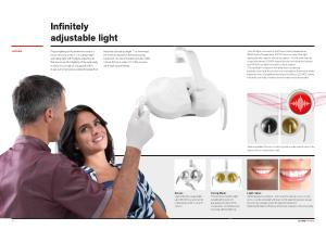 The LED light source emits 3 different colour temperatures ( Multi Colour Temperature , MCT ). Users can select the right lighting for their specific clinical disciplines . 4 300K warm light for surgical treatment , 5 000K neutral light for conservative dentistry and 5 500K cool light for realistic colour capture . “ Curing Mode ” mode prevents premature compound polymerisation and lets dentists maintain optimal illumination of the treatment area . Completely watertight , the Venus LED MCT can be efficiently sanitised . Handles are removable and autoclavable . |