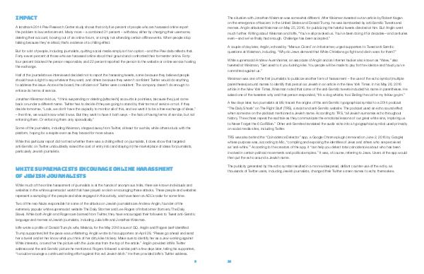 While this particular report did not test whether there was a chilling effect on journalists, it does show that targeted anti-Semitic on Twitter undoubtedly raised the cost of entry into( and staying in) the marketplace of ideas for journalists, particularly Jewish journalists.
