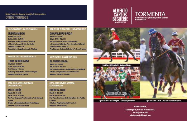 Estancia Los Pinos, Carlos Beguerie, Provincia de Buenos Aires. Tel.( 011) 15 6210 6706 albertobeguerie @ hotmail. com