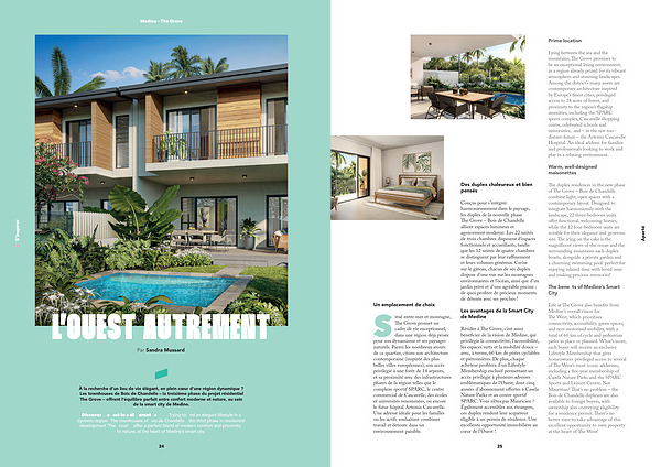 Discover The West in a different way • Trying to find an elegant lifestyle in a dynamic region ? The townhouses of Bois de Chandelle – the third phase in residential development ‘ The Grove ’ – offer a perfect blend of modern comfort and proximity to nature , at the heart of Medine ’ s smart city .