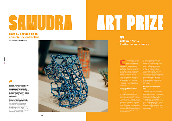 The competition ’ s catchphrase sums up its ambition . Taking place every two years and free to enter , established artists , amateurs and young talents alike are invited to explore the major ecological issues facing our island through their art . Judged by a panel of local and international personalities - from gallery owners to artists and film-makers - selection of entries is anonymous and based on criteria of thematic relevance , technical mastery , and originality . In 2024 , for the Samudra Art Prize ’ s second edition , the selected works were exhibited at the Caudan Arts Centre from 8 November to 8 December .