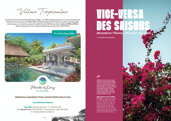 When seasons reverse: shifting the focus • In Mauritius, the seasons run in reverse: we bask in the summer sun while winter grips the rest of the world. The media in the“ North” talk about snow, cold, and ice, while our language is filled with trade winds and the call of the sea. This upsidedown weather is more than a climatic curiosity— it reminds us that the world doesn’ t follow a single calendar or share a single way of feeling the seasons.