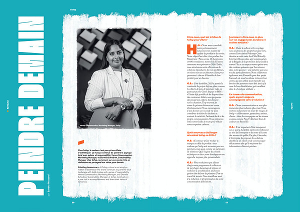 O. S.: Côté durabilité, 2025 a permis la continuité de projets déjà en place, comme la collecte de pots de peintures vides en partenariat avec Green Impact et PIM: s’ il était déjà possible de les déposer dans des conteneurs dédiés, nous proposons désormais leur collecte directement sur les chantiers. Trop souvent, les restes de peinture finissent au centre d’ enfouissement. Nous encourageons à leur donner une seconde vie pour contribuer à réduire les déchets, et soutenir la créativité, l’ artisanat local et les projets communautaires. Nous préparons enfin notre feuille de route pour réduire notre empreinte carbone.