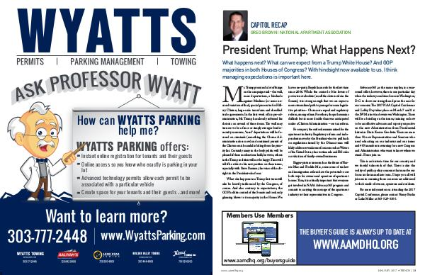 For our part, the outlook remains mixed for the apartment industry. Regulatory reform and independent moves by the President-elect to pull back on regulations issued by the Obama team will likely address several areas of concern such as Waters of the United States, the overtime rule and IRS rules on valuation of family-owned businesses.