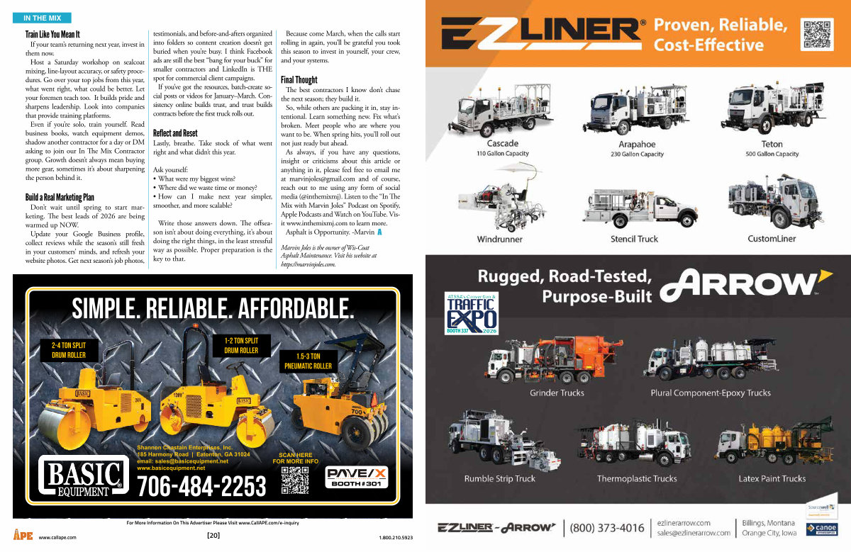 The best contractors I know don’ t chase the next season; they build it. So, while others are packing it in, stay intentional. Learn something new. Fix what’ s broken. Meet people who are where you want to be. When spring hits, you’ ll roll out not just ready but ahead. As always, if you have any questions, insight or criticisms about this article or anything in it, please feel free to email me at marvinjoles @ gmail. com and of course, reach out to me using any form of social media(@ inthemixmj). Listen to the“ In The Mix with Marvin Joles” Podcast on Spotify, Apple Podcasts and Watch on YouTube. Visit www. inthemixmj. com to learn more. Asphalt is Opportunity.-Marvin