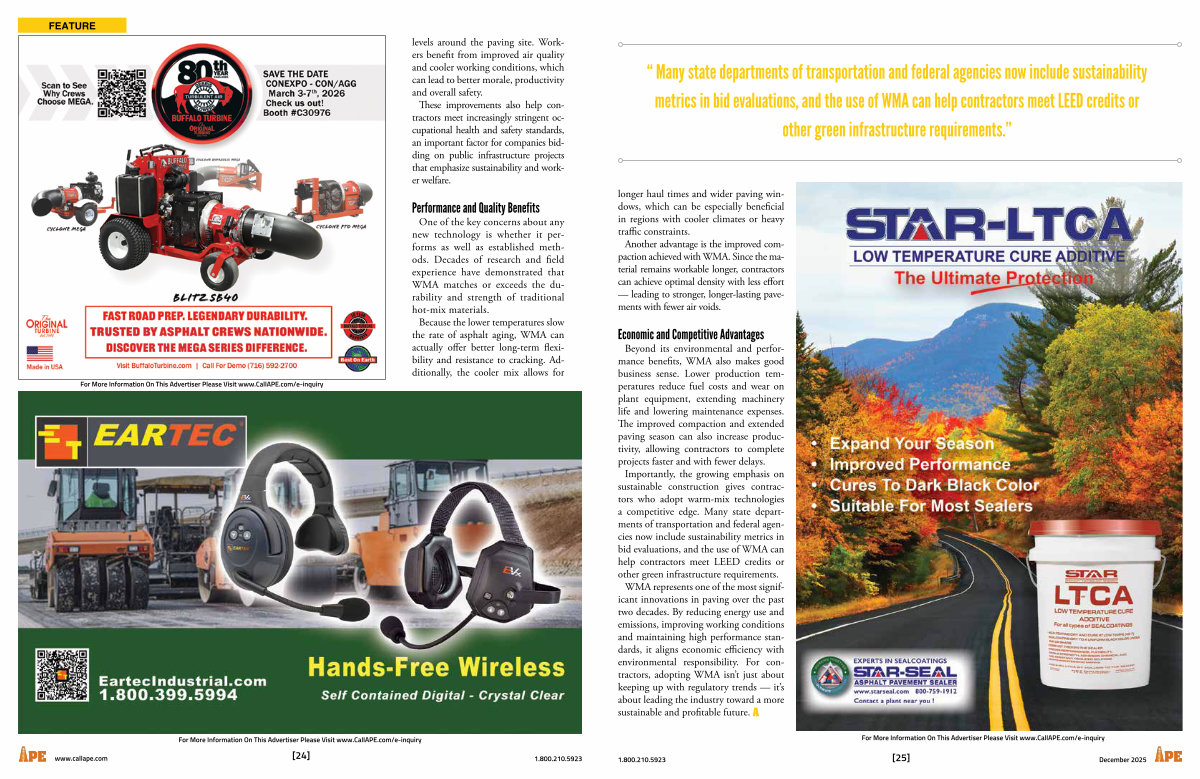 For More Information On This Advertiser Please Visit www. CallAPE. com / e-inquiry levels around the paving site. Workers benefit from improved air quality and cooler working conditions, which can lead to better morale, productivity and overall safety. These improvements also help contractors meet increasingly stringent occupational health and safety standards, an important factor for companies bidding on public infrastructure projects that emphasize sustainability and worker welfare.