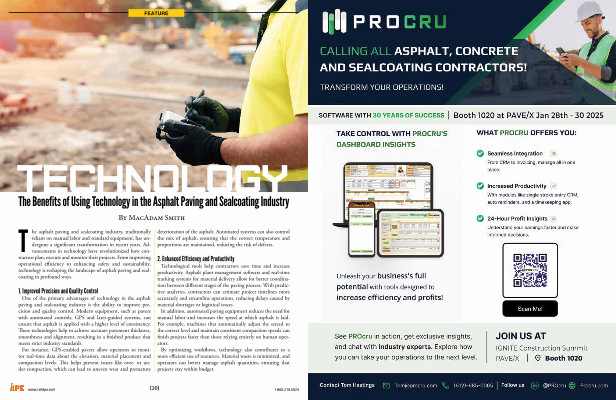 T he asphalt paving and sealcoating industry , traditionally reliant on manual labor and standard equipment , has undergone a significant transformation in recent years . Advancements in technology have revolutionized how contractors plan , execute and monitor their projects . From improving operational efficiency to enhancing safety and sustainability , technology is reshaping the landscape of asphalt paving and sealcoating in profound ways .