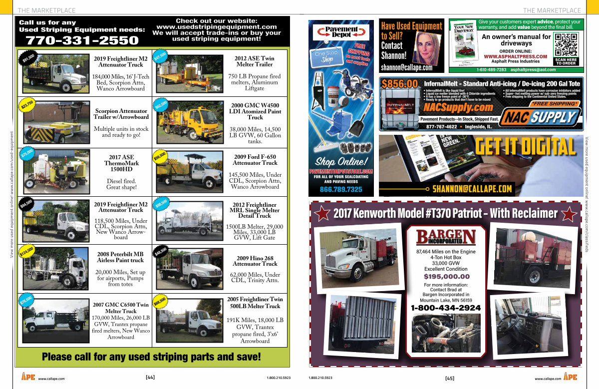 View more used equipment online! www. callape. com / classifieds