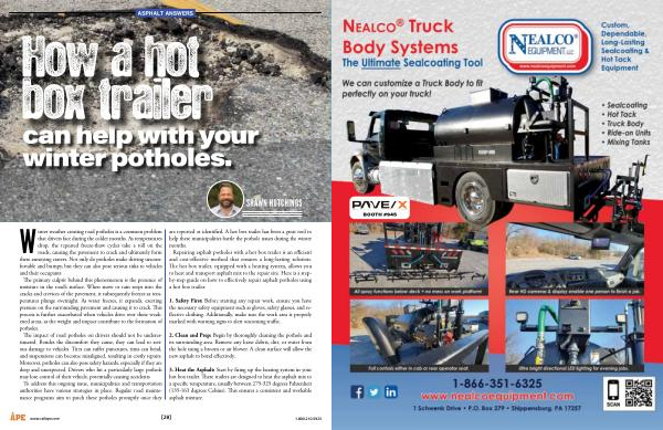 Winter weather creating road potholes is a common problem that drivers face during the colder months . As temperatures drop , the repeated freeze-thaw cycles take a toll on the roads , causing the pavement to crack and ultimately form these annoying craters . Not only do potholes make driving uncomfortable and bumpy , but they can also pose serious risks to vehicles and their occupants . The primary culprit behind this phenomenon is the presence of moisture in the road ’ s surface . When snow or rain seeps into the cracks and crevices of the pavement , it subsequently freezes as temperatures plunge overnight . As water freezes , it expands , exerting pressure on the surrounding pavement and causing it to crack . This process is further exacerbated when vehicles drive over these weakened areas , as the weight and impact contribute to the formation of potholes . The impact of road potholes on drivers should not be underestimated . Besides the discomfort they cause , they can lead to serious damage to vehicles . Tires can suffer punctures , rims can bend , and suspensions can become misaligned , resulting in costly repairs . Moreover , potholes can also pose safety hazards , especially if they are deep and unexpected . Drivers who hit a particularly large pothole may lose control of their vehicle , potentially causing accidents . To address this ongoing issue , municipalities and transportation authorities have various strategies in place . Regular road maintenance programs aim to patch these potholes promptly once they are reported or identified . A hot box trailer has been a great tool to help these municipalities battle the pothole issues during the winter months . Repairing asphalt potholes with a hot box trailer is an efficient and cost-effective method that ensures a long-lasting solution . The hot box trailer , equipped with a heating system , allows you to heat and transport asphalt mix to the repair site . Here is a stepby-step guide on how to effectively repair asphalt potholes using a hot box trailer :