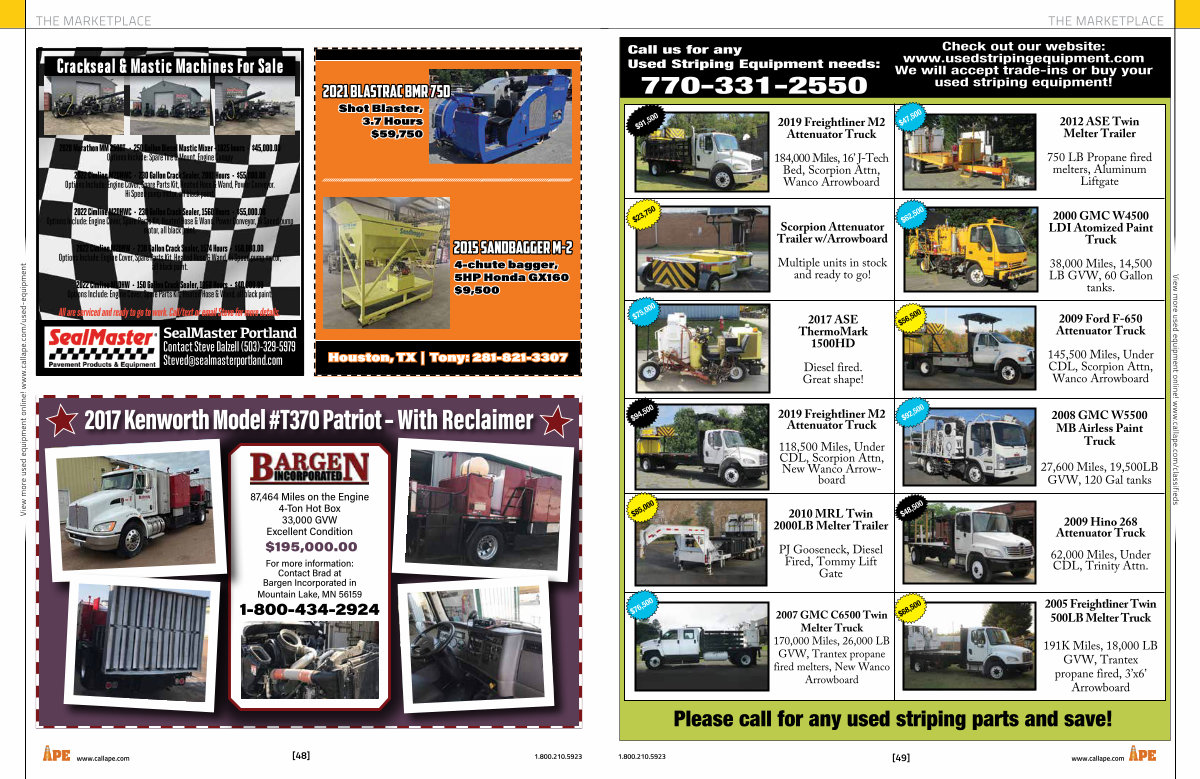 2022 Cimline M2DHWC • 230 Gallon Crack Sealer, 2081 Hours • $ 55,000.00 Options Include: Engine Cover, Spare Parts Kit, Heated Hose & Wand, Power Conveyor. Hi Speed pump motor, all black paint.