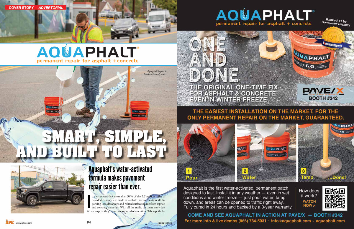 Aquaphalt’ s water-activated formula makes pavement repair easier than ever.