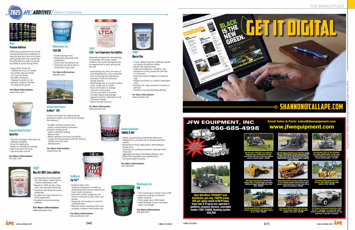 New Marathon TPS500PT tack distributor, gas eng, 18GPM pump, 500 gal, spray wand w / 50 ft hose, hose reel, 6 ft spray bar, operator’ s platform, propane burners, overnight heater 120V 1500W, flushing system- $ 34,550 |