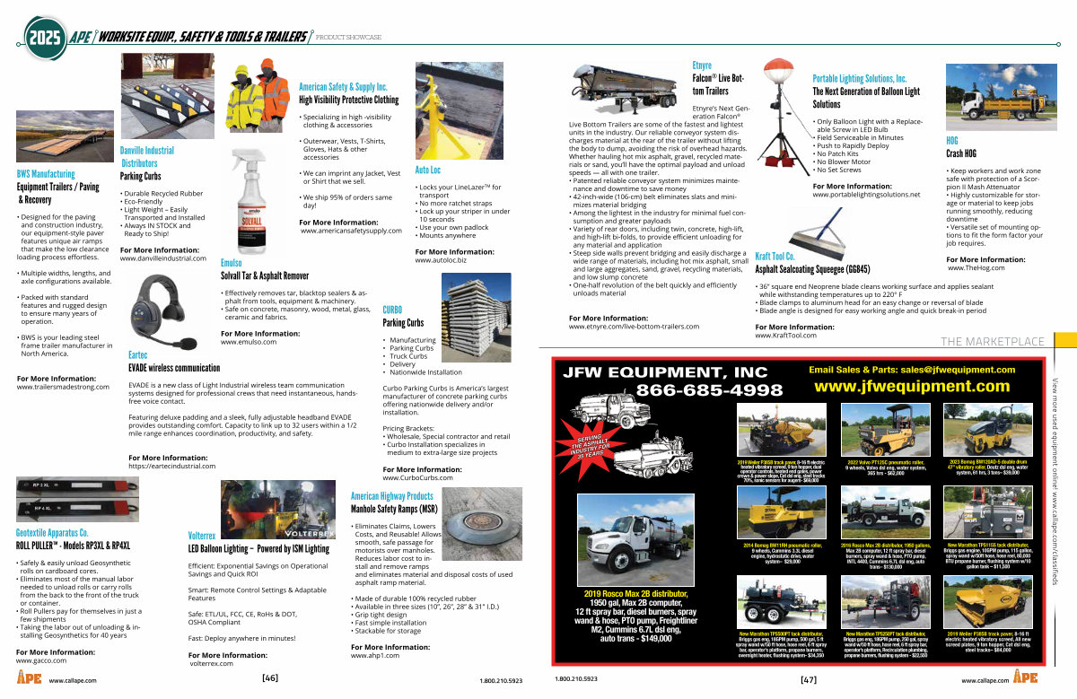 New Marathon TPS250PT tack distributor, Briggs gas eng, 18GPM pump, 250 gal, spray wand w / 50 ft hose, hose reel, 6 ft spray bar, operator’ s platform, Recirculation plumbing, propane burners, flushing system- $ 22,550